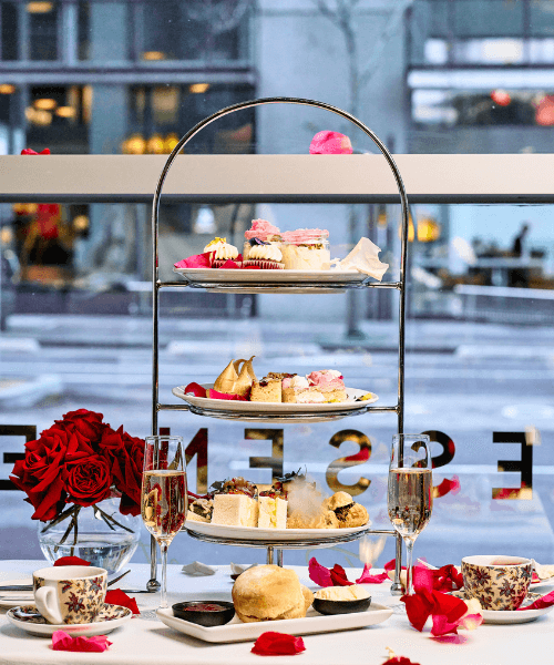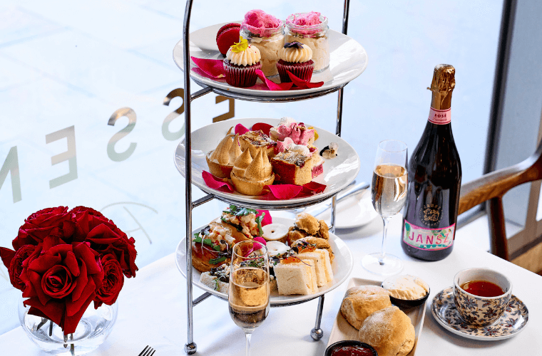 Seasonal High Tea at Melbourne Marriott Hotel for four people, with glass of Jansz Sparkling wine included; note menu subject to change, currently hotel is serving Blush & Bloom High Tea, inspired by the beauty of roses.