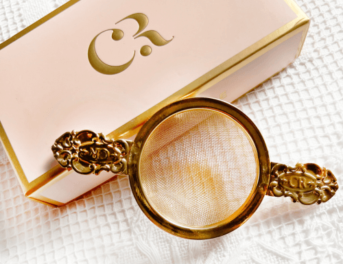 - Cristina Re’s Vintage Gold Tea Strainer. Made from the finest quality stainless steel and plated in elegant 24ct gold, you will be sure to delight your guests with this timeless piece.