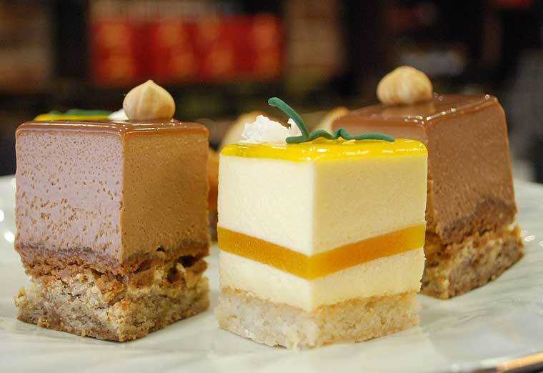 You will be treated to their most popular patisseries, the Passionfruit & Mango Mousse Slice and the Hazelnut Fan Slice. Followed by a selection of macarons, are the milk chocolate covered honeycomb sticks and their famous individual chocolates: champagne truffles, caramel gânache chocolate domes, chai infused milk chocolates and Figaro hazelnut pralines filled with slivered roasted almonds, pistachios, and Amarena cherries.