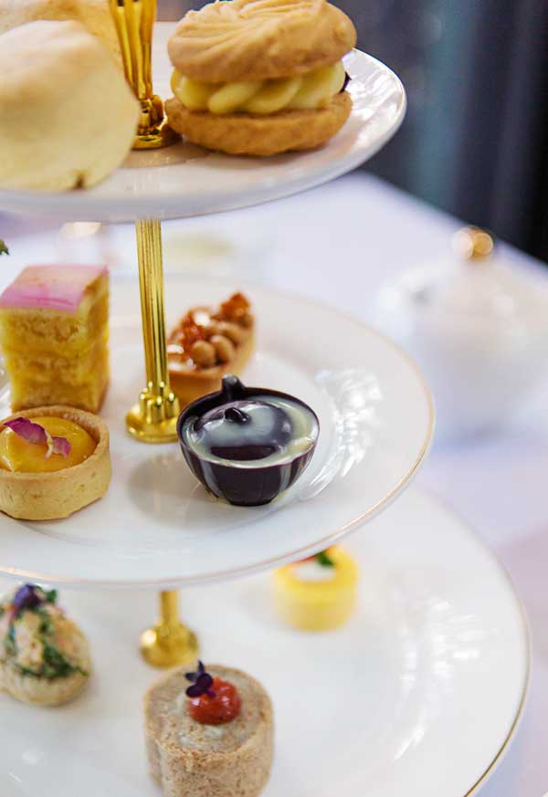 The brunch sitting is set in a traditional High Tea style with a buffet selection as well as tiered trays to the table from the on-site kitchen and pastry chefs.
