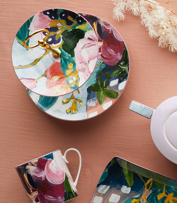 Captivating florals in abstract illustrations and vivid shades are the beauty behind the Bloom collection. This series, crafted from New Fine China, offers all the key pieces to create your very own high tea experience at home. Designed in Australia by Elana Vanlier.