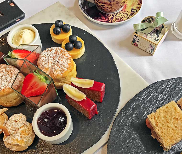The scrumptious High Tea menu includes savoury delights, sweet temptations, the classic scone and your choice of aromatic coffees or La Maison Du Thé. All the beautiful handmade cakes are made by the onsite Pastry Chef with natural ingredients, no colourings!