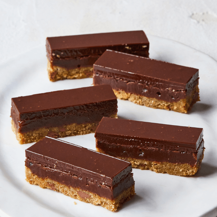 Indulge in Kirsten Tibballs’ heavenly Caramel Slice with Milk Chocolate Ganache—a chocolate lover’s dream.