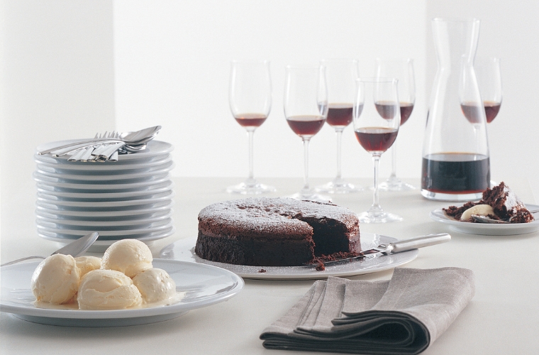 This is my and my daughter Josephine’s favourite chocolate cake. It has a heavenly texture. It is like a chocolate soufflé – and it behaves like one, as it rises and falls. So don’t freak out as it drops in the middle, because it has no flour to hold it up. It keeps well for two days, as long as it isn’t put in the refrigerator; this will result in it becoming hard and unpalatable.