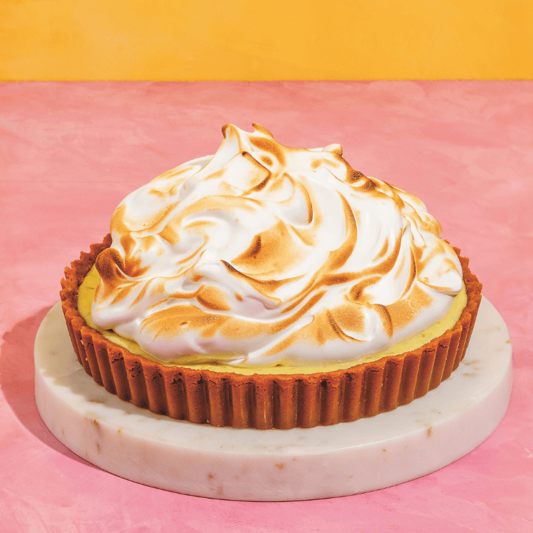 - Put the pie onto a serving plate, then pile on the meringue. Finally, use a blowtorch (the fun bit!) to caramelise the outside and be wowed by your own success. A proper showstopper.
