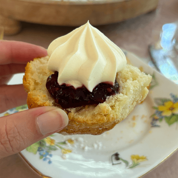 - Buttermilk Scones with homemade boysenberry and raspberry jam and cream