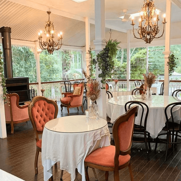 The beautifully restored Queenslander and sprawling gardens allow for a mix of indoor and outdoor settings. Whether you prefer a garden gazebo, a private pavilion, the front balcony with a view, an intimate function room, or the warmth of the tea house itself, each space offers its own unique charm – perfect for baby showers, bridal gatherings, birthdays or simply a well-deserved treat.