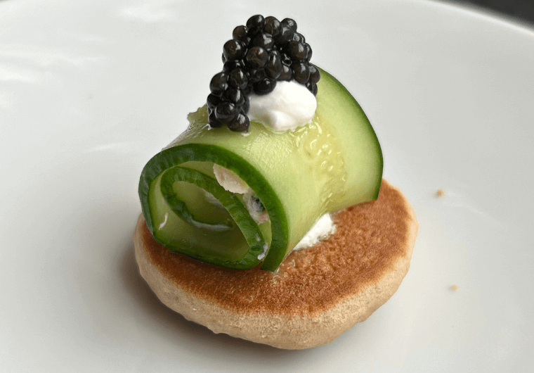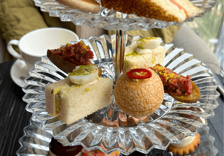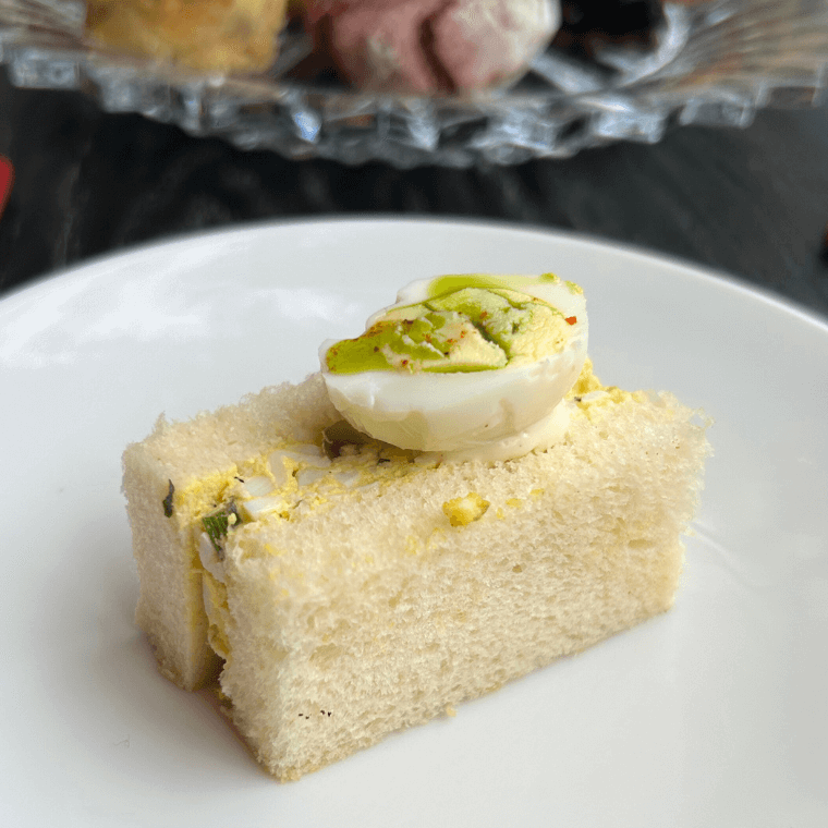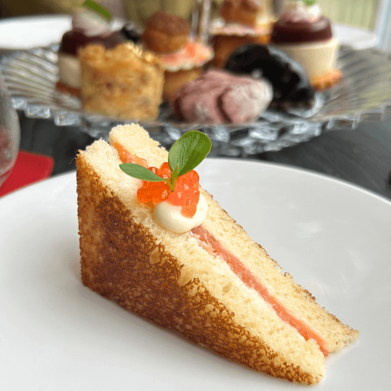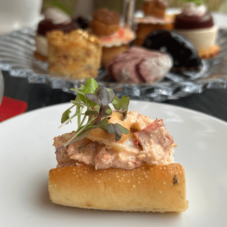 The three-level crystal pastry stand arrived first, along with pours of champagne. I was most excited for the six savory pieces. Every piece, from the smoked salmon and deviled egg tea sandwiches, to the mini lobster roll and caviar blini, truly delivered.