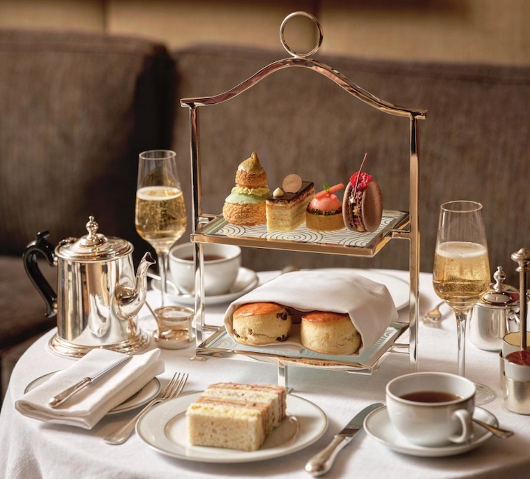 To refresh ourselves, we ordered from the long and flexible list of aperitifs. Gatsby of course would not have been content with just one option of champagne, and as well as having the classic Gusborne Blanc or Rose champagne, a number of tea cocktails are available. At the time of writing, one of our party was expecting her first child, and she was delighted that she did not have to miss out on the fun – as non-alcoholic varieties of both types of drink were proffered. The tea came in sparkling see-through pots and was served daintily – we both chose the totally refreshing Lemongrass and Lavender blend. Our drinks paired perfectly with the savouries which were quickly served to us and completely fresh and perfect; delicious Devilled Egg Mayonnaise and Oak-Smoked Lox sandwiches for our omnivore, Tofu Caesar and Cucumber and Cream Cheese for our Vegan and gluten-free friend.