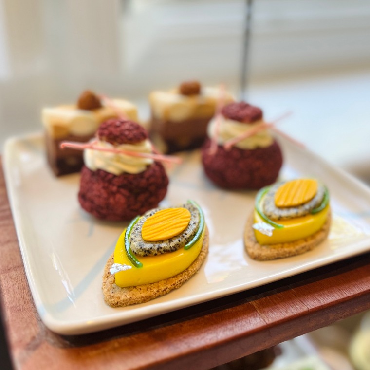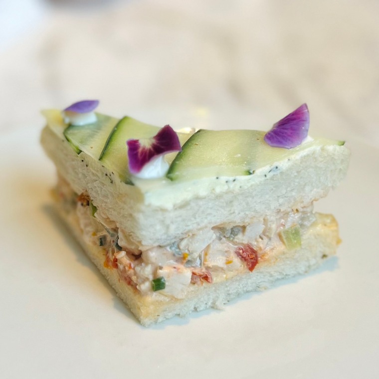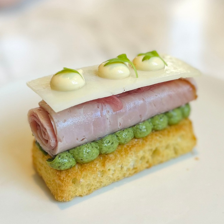 The standout savoury item was the sandwich with shaved leg ham, Cambray cheddar, toasted brioche, and green goddess dressing, which melted in the mouth deliciously.
