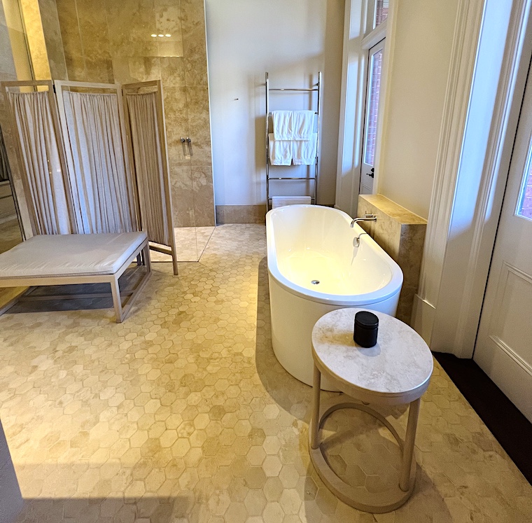 The Heritage Room felt more like a lavish home than a hotel room. The bedroom and bathroom were large and luxurious with lots of indulgent touches like the welcome drinks, bar snacks, bath salts, and take-home items including the bottle of CA Horizon Gin.