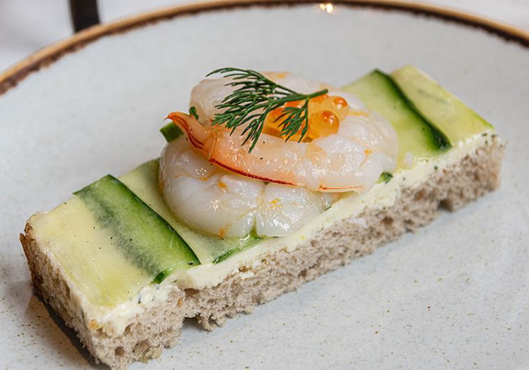 I opted for the Signature Afternoon Tea that includes a glass of Taittinger Brut Réserve NV which was the perfect accompaniment to the three savoury goodies nestled beautifully on the bottom level of the two-tiered stand before me.