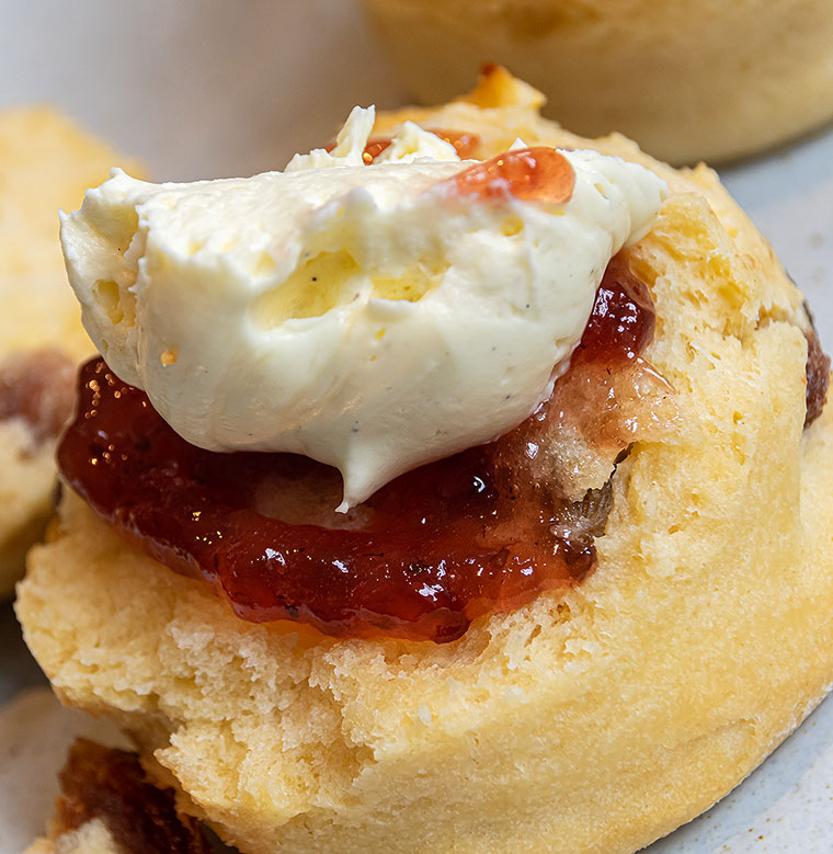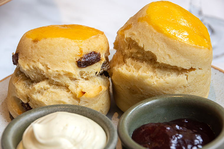 It was then time to order my hibiscus berry green tea courtesy of the neighbouring teahouse, Teassential Tea Store & Brew Bar. The crimson red ‘cuppa’ was the perfect partner to my fruit and plain scones which like my previous outings, were lovingly wrapped in a white napkin and served with pots of housemade jam and cream. The plain scone was anything but however, the fruit scone was outstanding making it one of the best I’ve ever had thanks to the abundance of fruit, toasty outer crust and fluffy, light centre.
