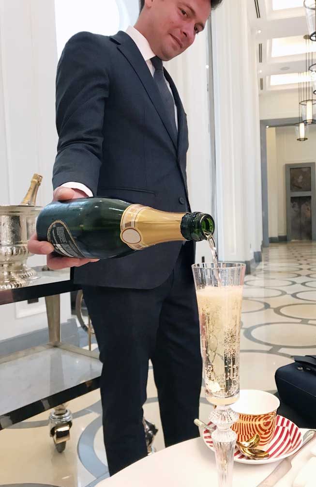 We started our afternoon tea with a Baccarat crystal flute of champagne while the menu and teas were explained to us by Jacob. The new afternoon tea menu was launched in April 2018 and it’s clear that the hotel prides itself on the quality of what they serve and how they serve it. Three different tea variations have been blended exclusively for Corinthia London – I chose a mellow blend (medium strength) of Earl Grey, Assam and Oolong but an aromatic and a robust blend were also available. There are plenty of other teas available, such as black blends, green teas, oolongs and white teas. I counted 25 varieties on offer, the Mango Black Blend and the Dragonwell green tea sounded really interesting.