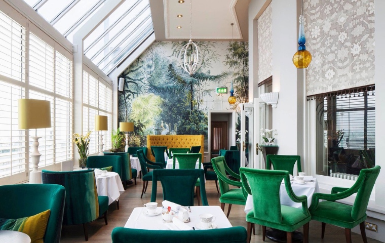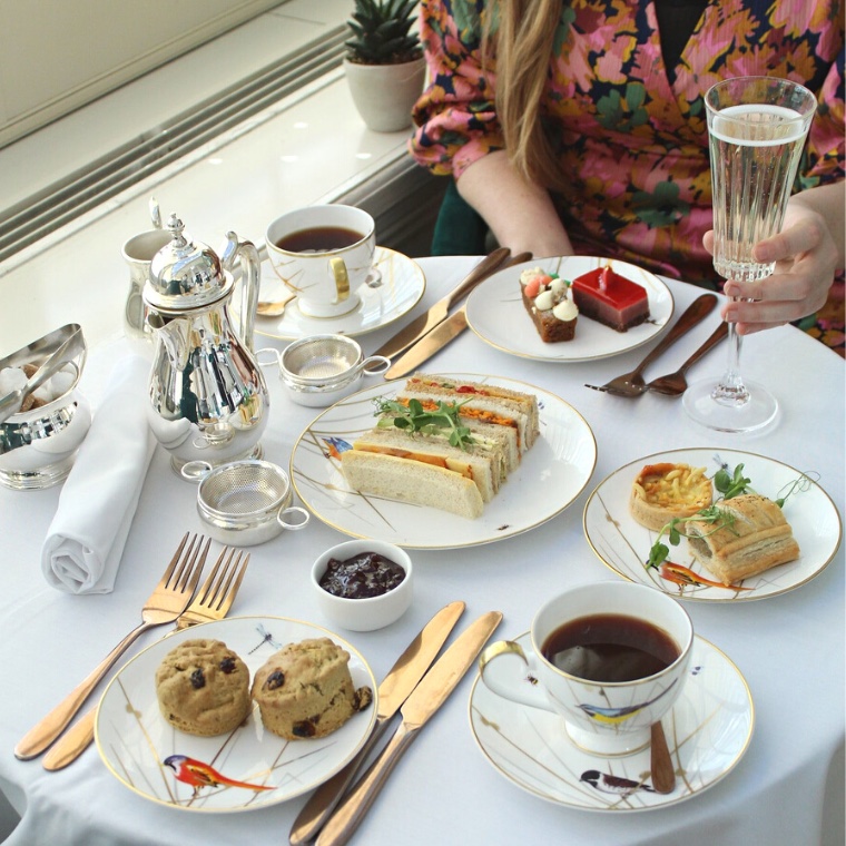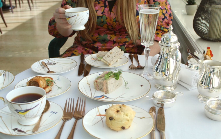 Afternoon Tea is enjoyed across two spaces: guests can choose either the light-filled terrace with sea views, or the opulent Victoria Lounge for a cosier experience. We sat in the sunny terrace on a warm autumn afternoon and felt as though we were in a lavish garden, surrounded by plants, botanical print wallpaper and green velvet high back chairs. In the background an instrumental smooth jazz playlist matched guests’ smart casual attire and an atmosphere of relaxed celebration.
