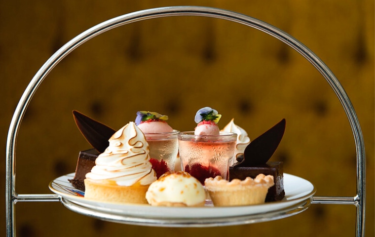 Moving on to the star of the show, the Shipton Mill cherry and almond scones are truly wonderful. With buttery, crumbly pastry, a thick luscious Tiptree strawberry preserve and just-sweet-enough clotted cream, these are the perfect introduction to the sweet elements of the tea. The top tier of the tea stand is a delight for all senses with four beautifully presented mini cakes and pastries. With double flavoured macarons, a blackberry and white chocolate panna cotta mousse and a mango and passionfruit curd meringue tart, the light, fruity flavours are well covered before guests move onto the final sweet bite. The dark chocolate, caramel and raspberry cup is rich, thick and delicious, the perfect decadent end to a wonderful experience… except that it’s not the end! Guests are then treated to a slice of cake from the cake trolley which features a selection of cakes prepared fresh daily. On the day we visited, we chose a carrot cake which was moist, dense, spicy and with a superbly creamy cream cheese icing. For those who find this extra treat a little much, The Grand offers cake boxes to allow guests to continue enjoying the experience at a later time at home.
