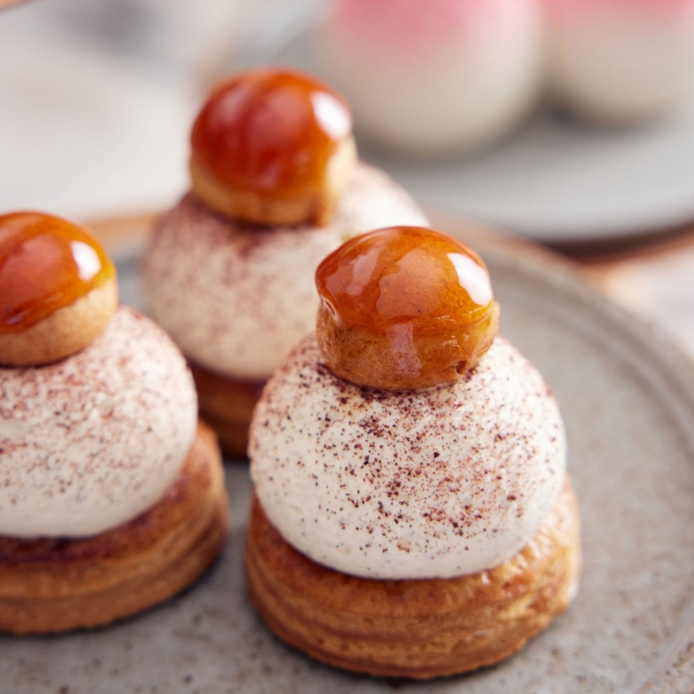 - St. Honoré, pecan praline, vanilla bean chantilly, toffee