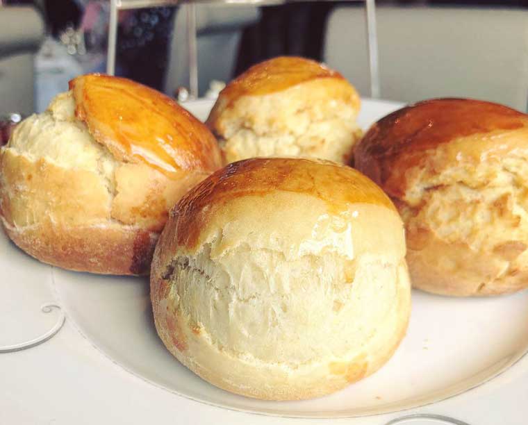 - Traditional and sultana scones – baked fresh daily and served with Windsor jam and thick double cream