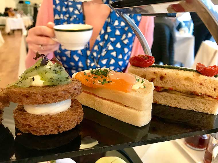Let’s face it, sandwiches in an afternoon tea are a bit like the beginning of any tour – you enjoy them but sort of want to get through them quickly so you can get to the good bits. The cream cheese and minted pickled cucumber sandwich was particularly nice, as was the char grilled cajun aubergine and vegan pesto on tomato bread. As your feet click on the stone floors and you walk past the statues and the dark wood soaked with whispers and sights of years gone by, you enjoy it but are intrigued to see the grand chambers ahead (I would have been happy to have had an extra cucumber sandwich though).