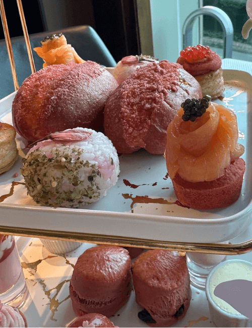 The sweet treats were also plentiful. What stood out for me in particular was the humble Madeline – a twist on a classic the hotel had done by infusing it with Sakura and citrus. There were also profiteroles filled with vanilla cream and strawberry ganache; mini pink scones served with clotted cream and strawberry jam; and a rose Sakura Mont Blanc. Suffice to say we struggled to finish and just as we thought we were at the finish line, they brought us a clotted cream gelato which, as simple and delicate as it was, was very much the star of the show. And if all of that isn’t enough, you can even add a pink bellini cocktail to elevate the experience!