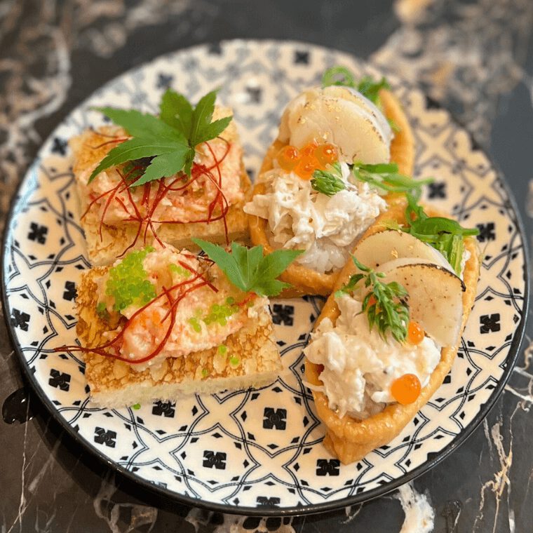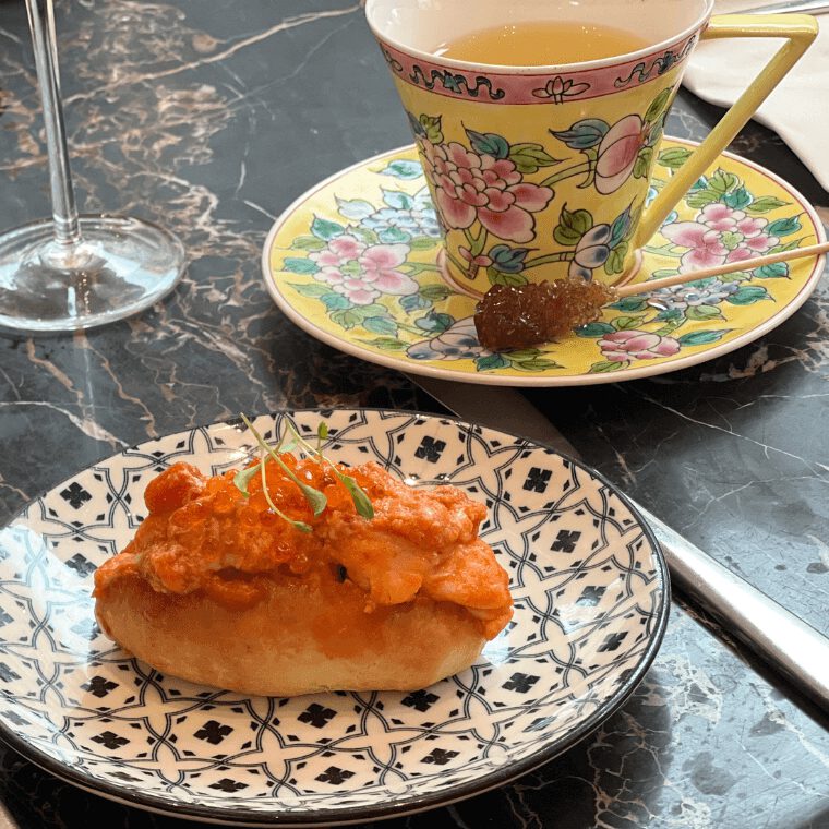 The Chilli Boston Lobster Roll is a savoury standout and the perfect balance of spicy Singapore-style lobster and a briny pop of salmon roe, encased in a buttery brioche bun. Another highlight is the Signature Kaya Jam and Foie Gras with pickled Kumquat, Marron Glacé on top of a Chilli Macaron. This flavour combination is creative and unusual – but it works.