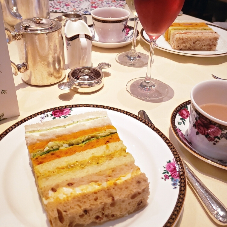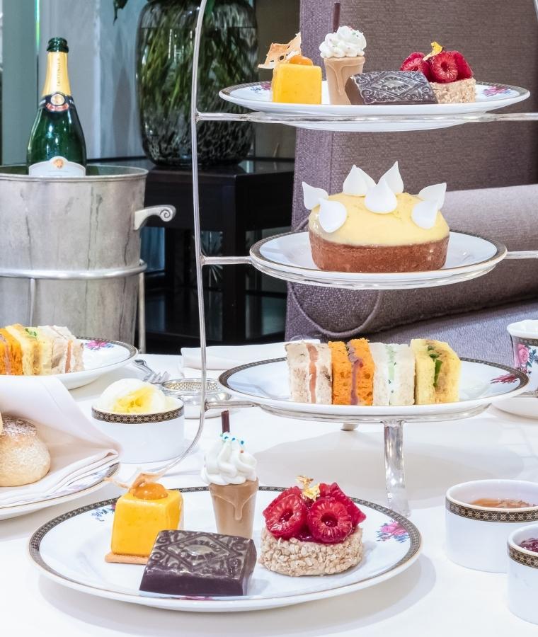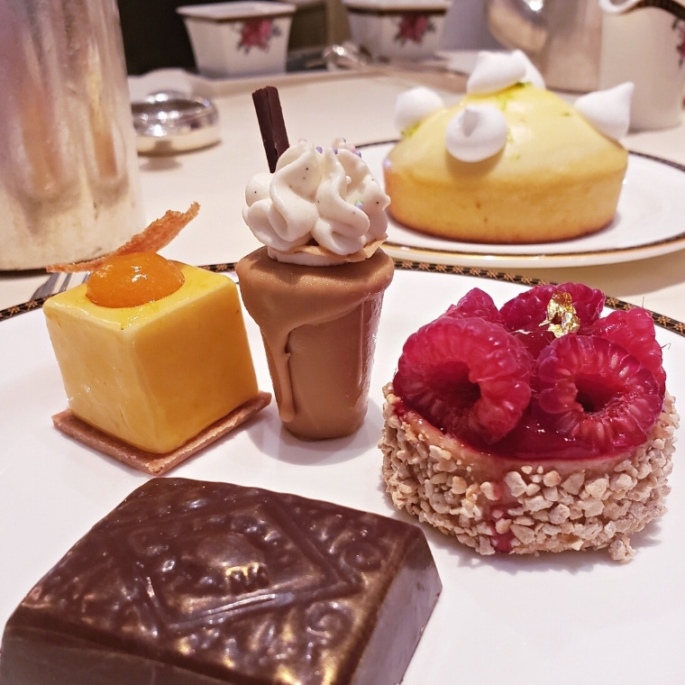 We start off with a glass of chilled Laurent Perrier and a selection of the softest, fluffiest sandwiches. All the classic flavours are here, smoked salmon, coronation chicken, cucumber & cream cheese and roast beef and they’re gone all too soon. I’ve been offered refills of sandwiches in the past at other teas, which perhaps marked a departure from the heavy Afternoon Teas of yore – instead a buttery cheese scone served with tomato chutney, one of my personal favourites, and something I could have eaten at least a few more of – marked the end to the savoury course.