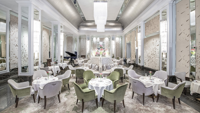 Glittering chandeliers, rose-gold walls and sparkling mirrors contribute to a boudoir-style feel and with a tinkling piano in the corner, there’s an upbeat feeling of relaxation in the air, not the hushed silence that can sometimes be present in the city’s 5-star hotels.