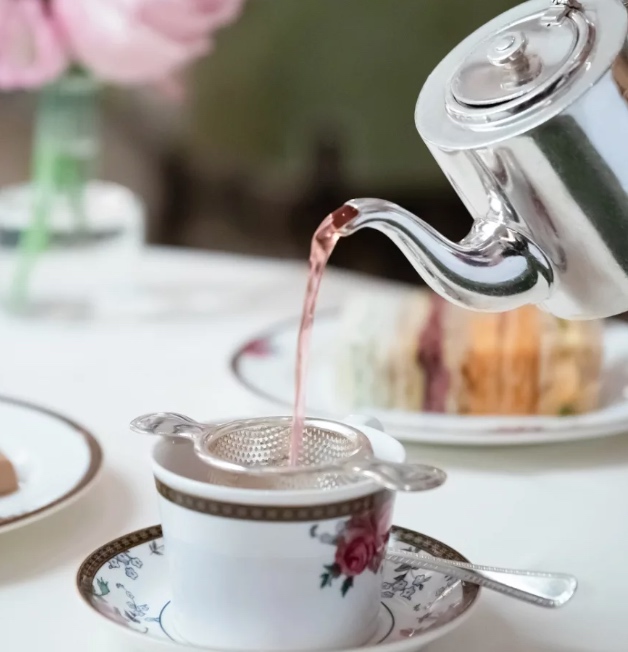 Rose patterned Wedgwood china shows off the selection of pastries and our tea – all from the Jing tea collection. I start with a subtle Silver Needle, leaving the more robust Earl Grey for afters.