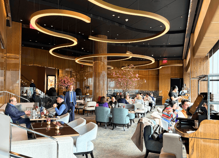 One such option is the Mandarin Oriental New York, where Afternoon Tea is served at the MO Lounge on the 35th floor, boasting spectacular views of Central Park and the Manhattan skyline. The five-star hotel features 244 hotel rooms and suites, styled with luxurious and elegant décor for the discerning traveller. MO features a sunken lounge with club chairs, plush carpet, cherry blossom trees providing a pop of colour and a dramatic curved lighting feature circling above, but all eyes are on the view.