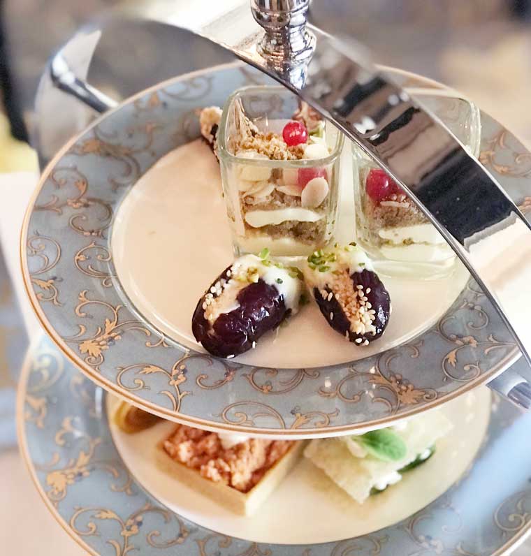 Finally, we had the top plate of chammi dates and khabise triffle, which perfectly complete a pretty perfect afternoon tea experience. And it wouldn’t be an Emirati high tea without dates, a staple in the Gulf, and these were filled with churned full cream Laban milk and coated in white chocolate and pistachio crumble. In a word: yum. They’re basically dates, but very extra. We finished with a traditional Emirati dessert triffle of nuts, sweet cream cheese and berries. If you haven’t noticed, the Emirati really like cream cheese, and why wouldn’t you, it’s delicious! Especially in triffle.