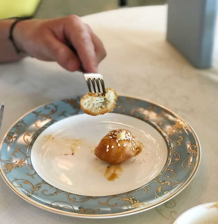 On the same plate was lugimat, which are sesame seed honey date fried dumplings filled with pastry cream. They were deliciously fluffy but also doughy with a lightness that was unexpected and just sweet enough to not be sickly.