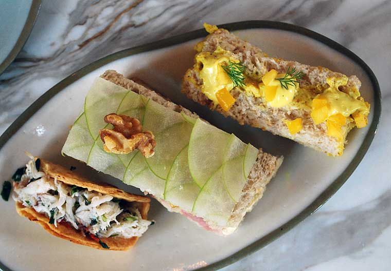 Pickering Brook used to be a popular stopping place on the Upper Darling Range Railway, now well-known for its sweet Granny Smith apples. - Smoked chicken with egg curry mayonnaise on white bread
