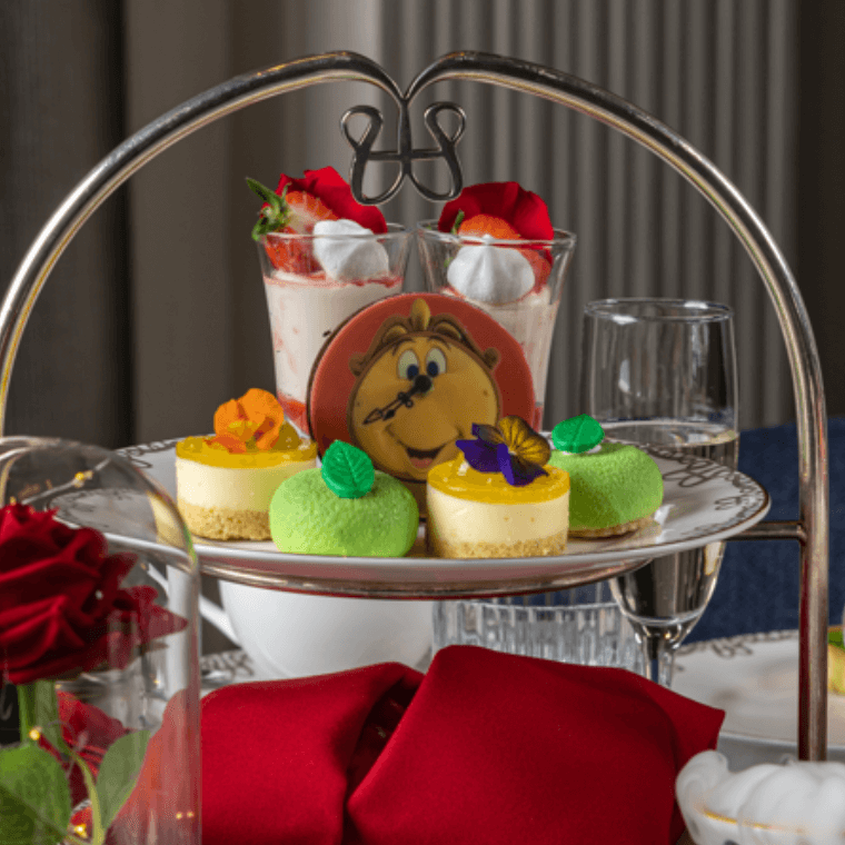 We scoffed a strawberry, elderflower and rose Eton Mess, blackberry mousse cake, and a dark chocolate and raspberry tart which was all dressed up to look like the wise old grandfather clock ‘Cogsworth’ from the movie. Even though this really could have been quite tacky, it wasn’t at all: we were totally blown away by the exquisite menu design and execution – it was a tea that even non-Disney fans would have enjoyed a lot.