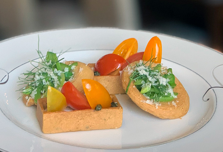 - Heirloom Tomato, Ricotta, Fried Capers on Puff Pastry