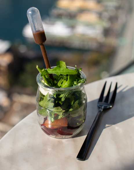 - Salad – Goats cheese, vegetables, olive oil