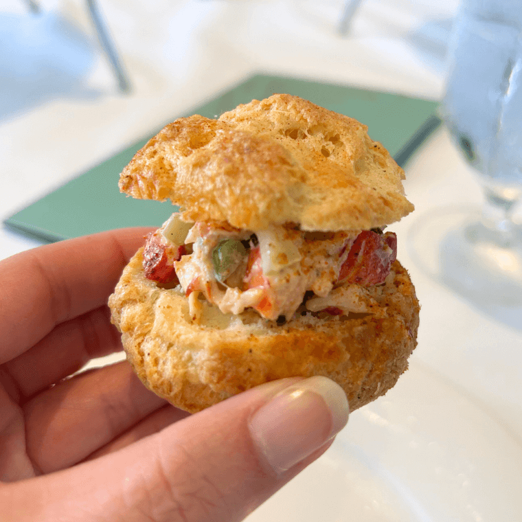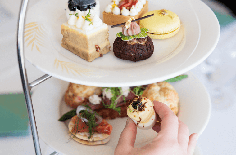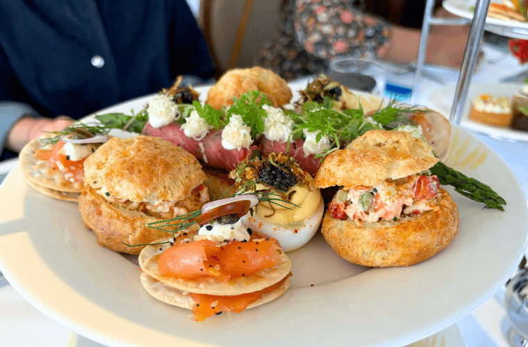 On our visit, the classic three-tiered stand offered a medley of savoury bites, scones, and sweets. Highlights of the savoury selection included a nostalgic devilled egg and a decadent New England lobster roll. However, the smoked salmon disappointed, and the expected bagel crisps were replaced with lacklustre water crackers. Guests can elevate their Afternoon Tea experience with a glass of Veuve Clicquot (+$10) or Ruinart Blanc de Blancs (+$20)—a welcome indulgence alongside the savoury course.