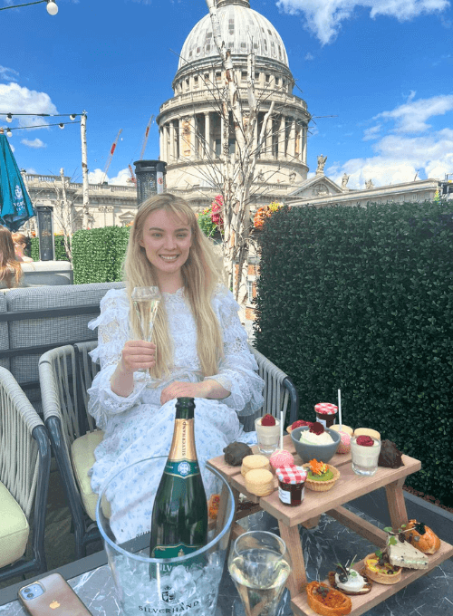 Close-up views of London’s iconic St Paul’s Cathedral, bubbles from Silverhand Estate and tasty savouries and sweets make for a laid-back Afternoon Tea experience at Sabine's Rooftop - a perfect summer day out for the girls.