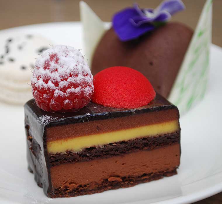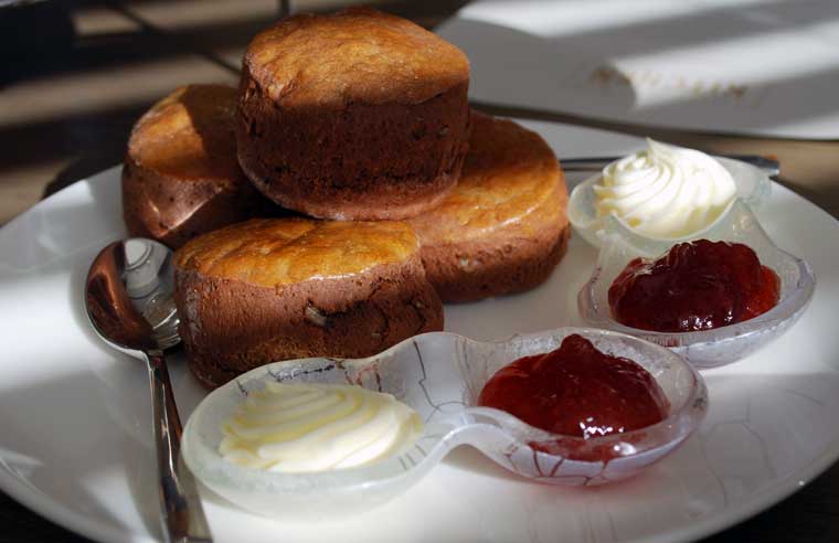- Chocolate scones, chocolate crème diplomate and vanilla crème Chantilly