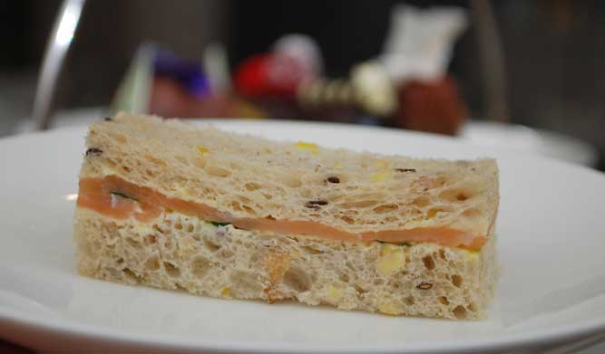 - Smoked salmon, tomato. Capers and crème fraiche finger sandwich