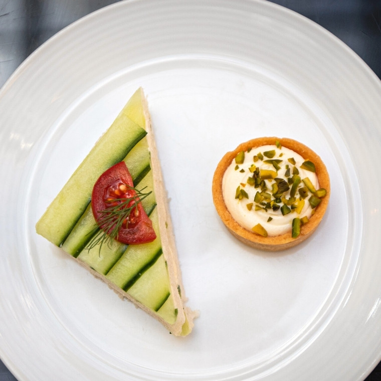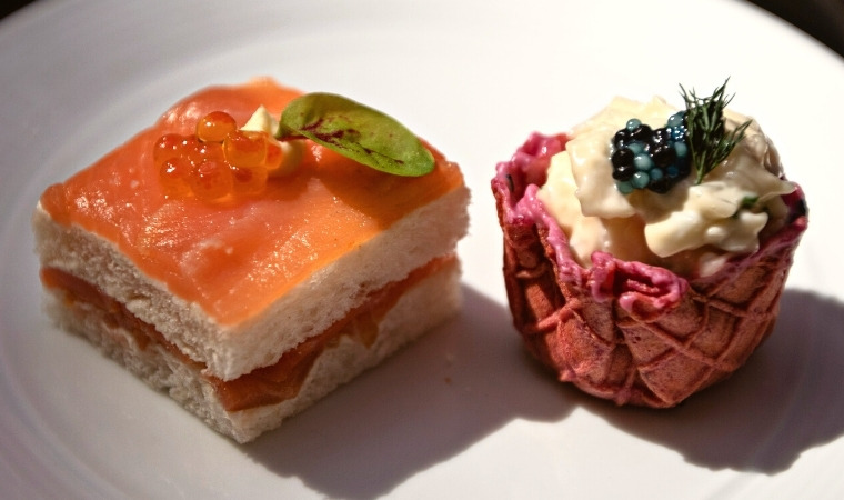 The stand arrives at the table and the first thing we notice is the range of colours across the plates. When dieticians say “eat the rainbow” we’re not quite sure this menu is what they had in mind, but hey, we’re going with it!