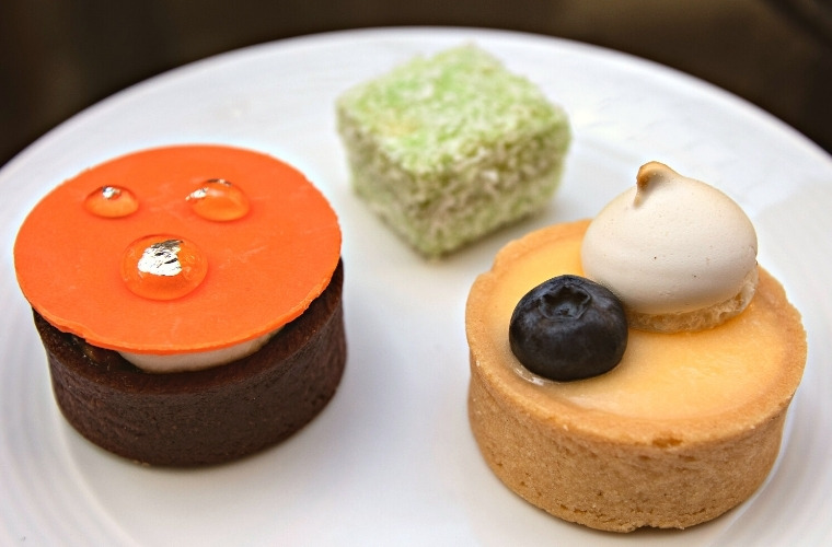 With savouries done sweets were up next. I did a double take when I saw a chunk of fruit cake on the plate. Fruit cake? Since I started writing for High Tea Society way back in 2012 I’ve never come across a piece of traditional fruit cake – ever. Why such a reaction you ask? It’s because I really, really, really dislike it. People who know me (mostly my mum) will find it hilarious that I then had to at least take a bite! While the flavour was great, as per usual I just couldn’t get past the dried fruit texture. People tell me being dense with fruit is a great thing in a fruit cake, I’ll just have to believe them.