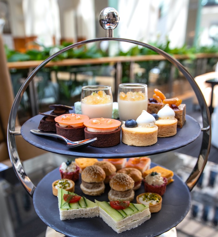 Served in The Bar off the tranquil hotel lobby, the area is a sun-filled atrium in the centre of the heritage GPO building. A mix of regular tables, lower coffee tables and surrounded by planters it has an intimate feel. Yet being able to see the sky through the glass ceiling and the expansive sandstone building reaching up around you makes it feel grand and open.
