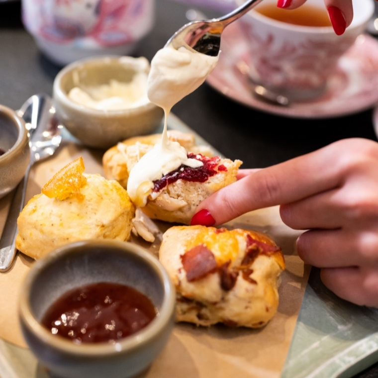 - Bitter orange and pepper berry scone, with raw honey infused clotted cream