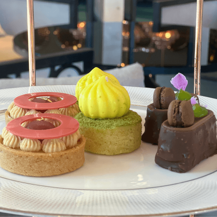 It was then time to move up to the top tier, where the three desserts were calling my name. The passionfruit financier, pineapple petite gateaux, was a light, fruity summery start to my favourite part of the menu. While the yuzu tartlet with raspberry gel and vanilla cream packed a punch with a strong citrus flavour. However, the dark chocolate genoise with praline mousse and lime and mint gel was sublime, and yes, it tasted as good as it sounds, earning my coveted dish of the day. Everything from the sponge to the mousse to the gel was a delight, with every mouthful better than the last!