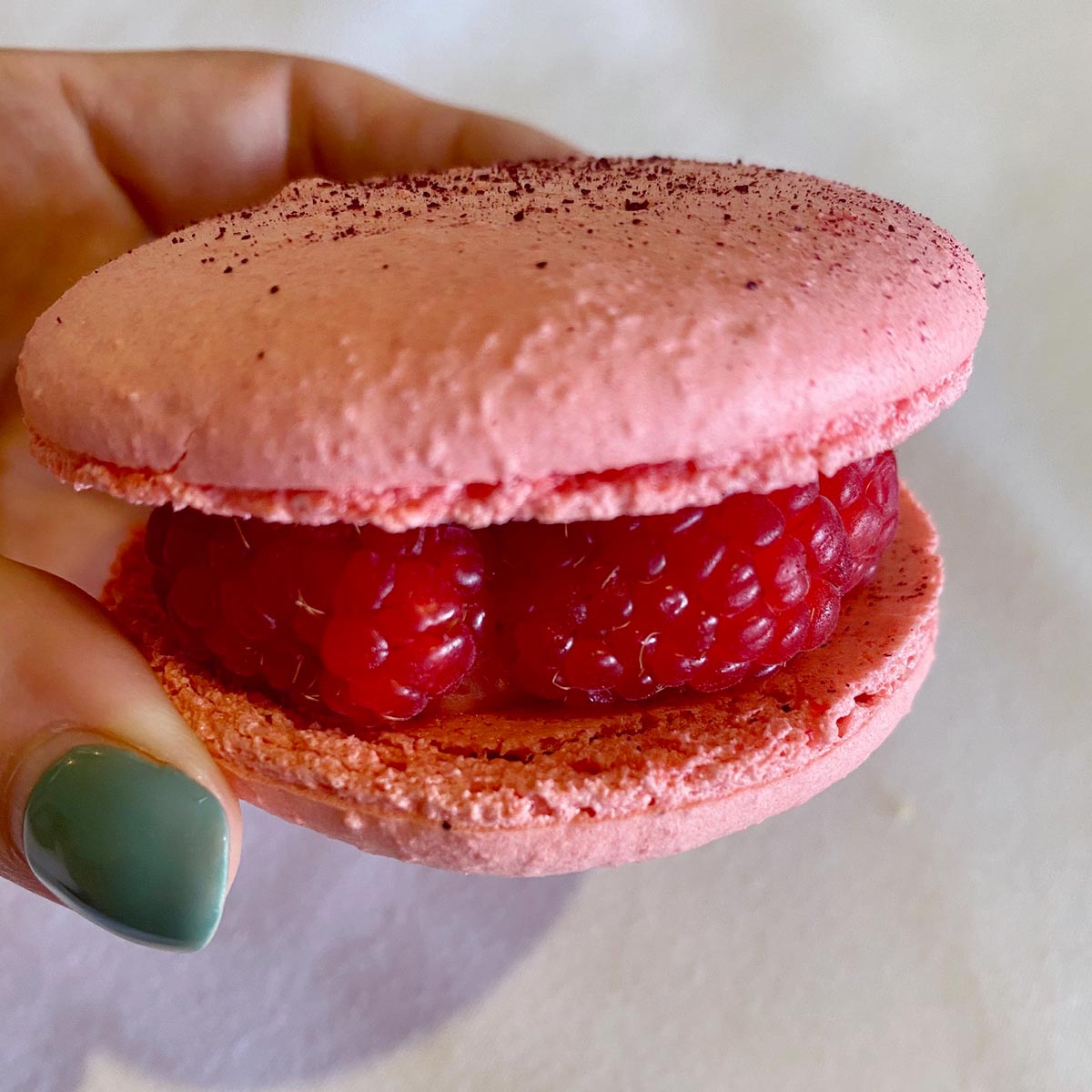 Sweets included oversized rose, raspberry and lychee macarons, chocolate mousse with pistachio cream and a passionfruit cream choux pastry with cream cheese and orange marmalade.