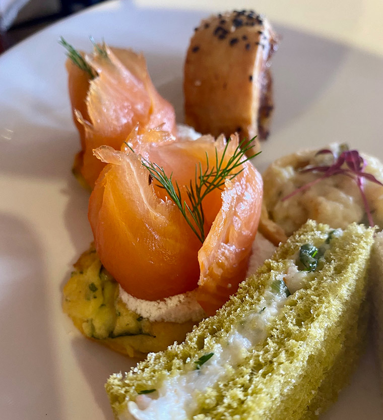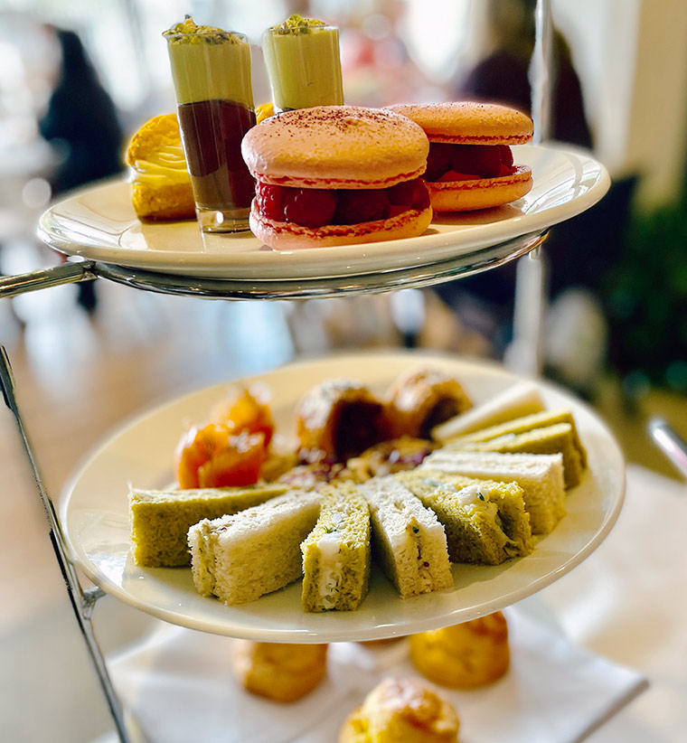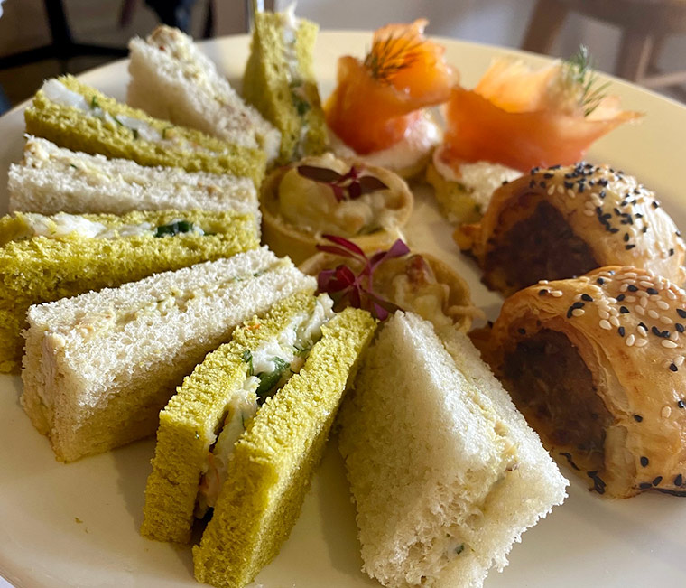 There’s also a selection of finger sandwiches that go one level above your typical cream cheese and cucumber and include flavours such as cucumber and prawn and chicken and pistou (a sauce, similar to pesto and made from cloves of garlic, fresh basil, and olive oil.)