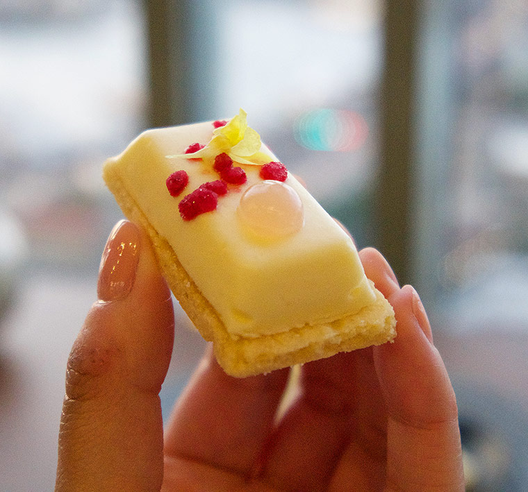 I have always been a firm believer in having the lightest lunch possible so that I can enjoy every single piece of afternoon tea and that always includes the scones. The team at Altitude serve 2 scones, a salted butter scone that balances with the sweetness of the native Davidson plum jam (I have heard so much about Davidson plums on Masterchef so I was excited to finally taste one) and the lemon myrtle scone that brings a hint of acidity to round the final tier off.