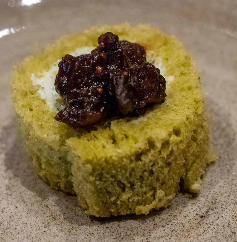 - Herbed goats cheese pinwheel, fig & sultana compote, spinach bread
