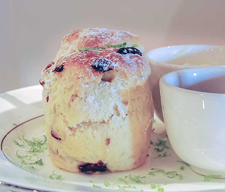 It was then time to shift my attention to the sweets, namely the cranberry and lime scones with potted cream and berry compote. I almost got the feeling they were slightly undercooked, a deliberate ploy I’m sure as it made them so much better to almost any others I have tried.