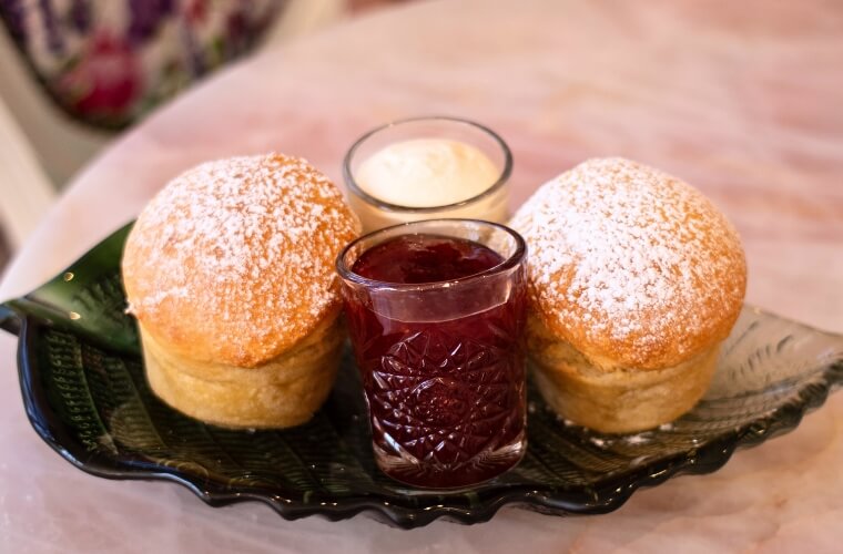 Freshly baked scones with locally made jam and cream